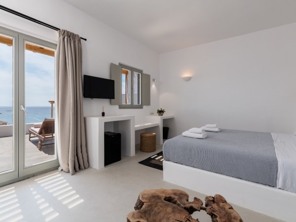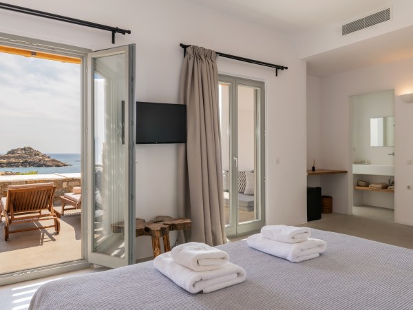 Located in Platis Yialos Mykonos, Trinity is a 7 bedroom villa with a private outdoor swimming pool, terrace and a bar. The property is set a few minutes walk from Scorpios, Nammos, Soho House, and Paradise beach.